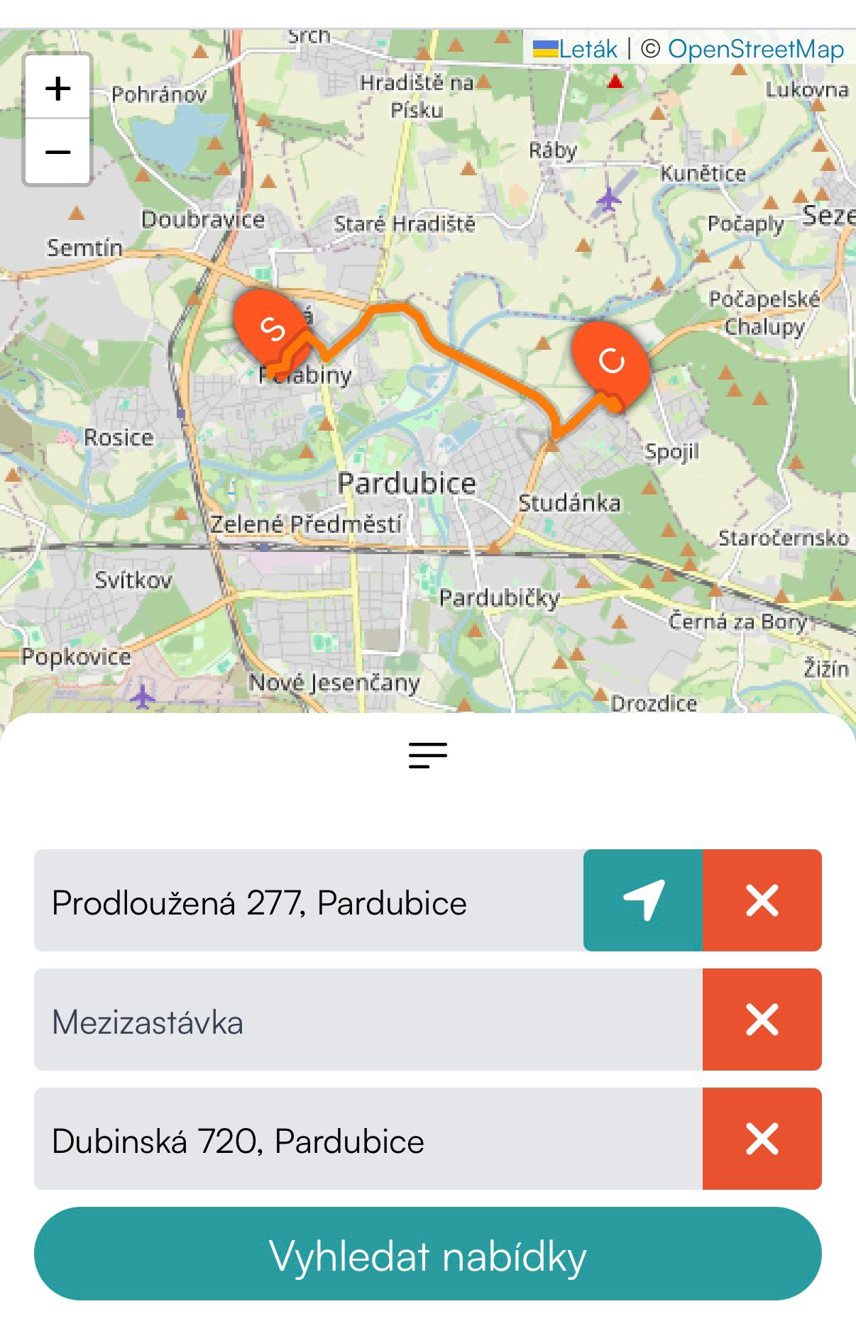 ● Vyber nástupní adresu nebo klikni na polohu